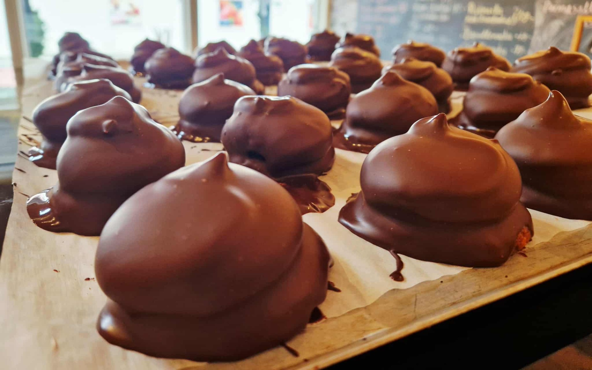Mörk choklad. Mandelbotten. Äkta smör.