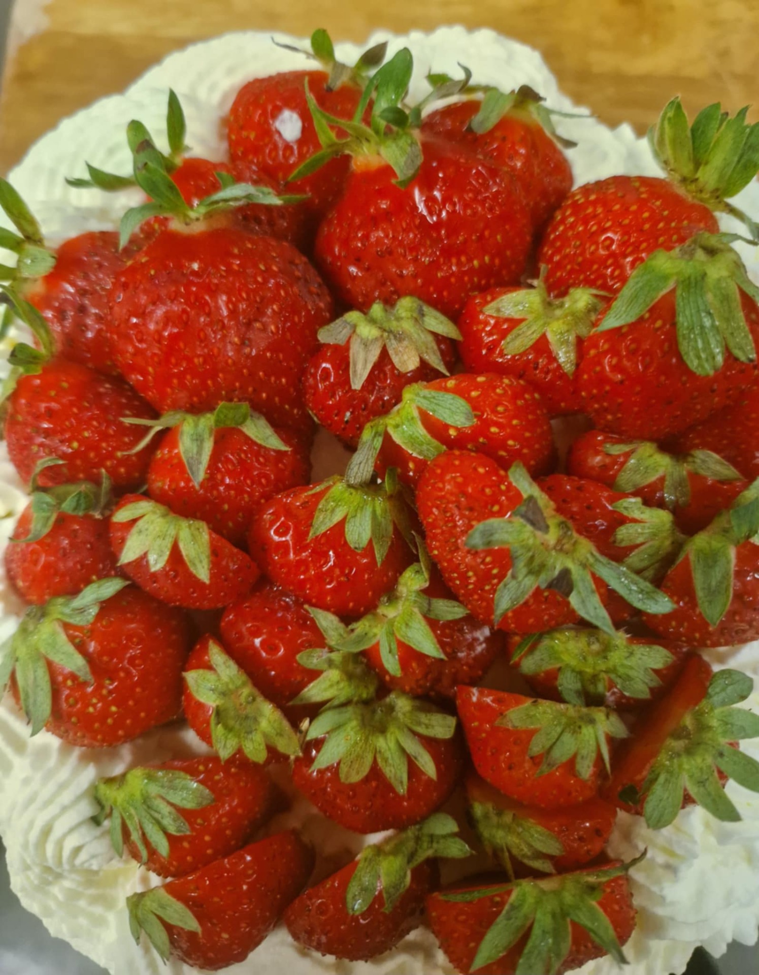 VISPGRÄDDE, vatten, socker, jordgubbar färska, VETEMJÖL, ÄGG, KÄRNMJÖLKSPULVER, vegetabiliskt fett (kokosnöt), modifierad stärkelse: E1442, VETESTÄRKELSE, fuktighetsbevarande medel: E422, modifierad stärkelse, bakpulver: (E450, E500), emulgeringsmedel: (E475, E471, E477, E481), konserveringsmedel: (E202, E281), invertsocker, SKUMMJÖLKSPULVER, salt, färgämne: (E160a, E101), arom, arom (vanilj), stabiliseringsmedel: E415